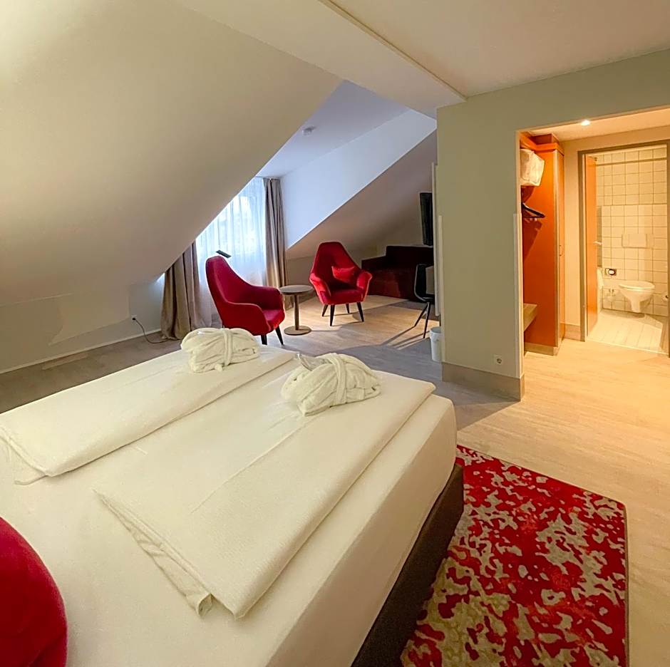 Queensize of about 59 ft² , fresh renovated in 2021 Equipment: Bathroom with bathtub and shower, WC, hair dryer, make-up mirror, telephone, desk, satellite TV and radio.